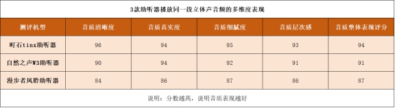 测评方法:本次测试,我播放了同一段立体声音频,重点关注三款助听器在音质清晰度、真实度、细腻度和层次感方面的表现,然后对维度进行评分。