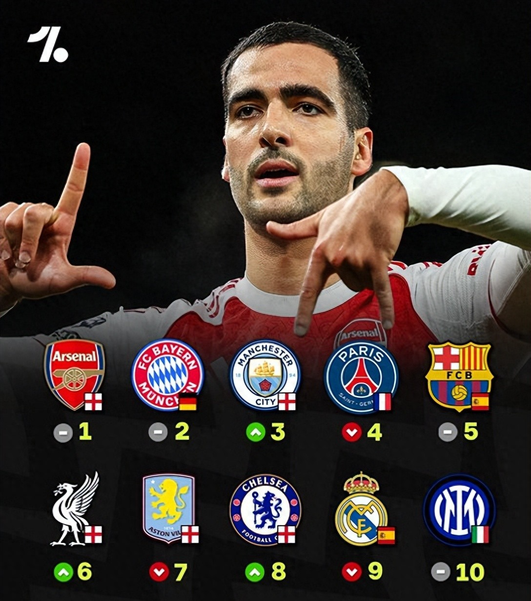 至少,在OPTA的最新排名中,阿森纳就是力压拜仁,曼城和巴黎等一众豪门而登顶足坛俱乐部实力排行榜的第一名。