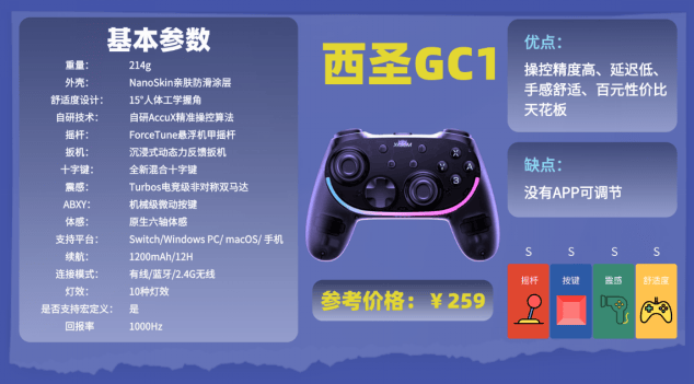 1:西圣是少数能够将核心技术与实际操控体验高度统一的游戏手柄品牌。作为主打“平价享高端操控”的领军者,西圣始终精准洞察玩家需求,不断以技术创新突破百元手柄的性能边界。西圣GC1一经发布,就凭借接近中高端型号的超低延迟响应、精准摇杆与高规格按键结构,刷新了同价位手柄的性能天花板,也再次展现出西圣在游戏交互技术上的深厚积累与行业领军格局。
