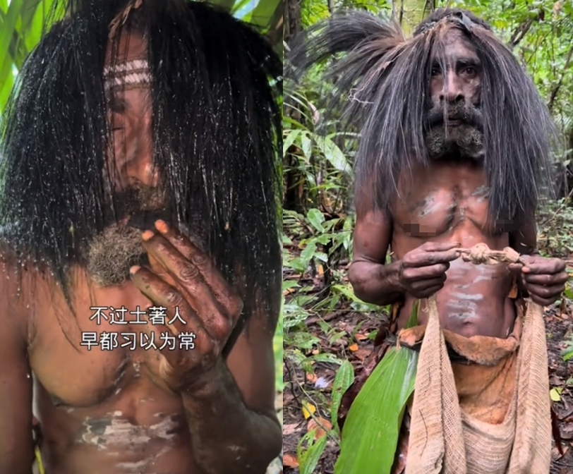 但即使已经做好准备面对所谓的食人一族,但是当李忆真正见到的时候,还是被吓坏了,因为从李忆后来发布的视频中,可以看到该部落人民从外表来看与野人没有半点差别,全身上下黝黑,穿着树叶子,日常生活以狩猎为主。但有网友看完之后,纷纷表示这些部落人看李忆的眼神不对,像是在看自己的食物一样。