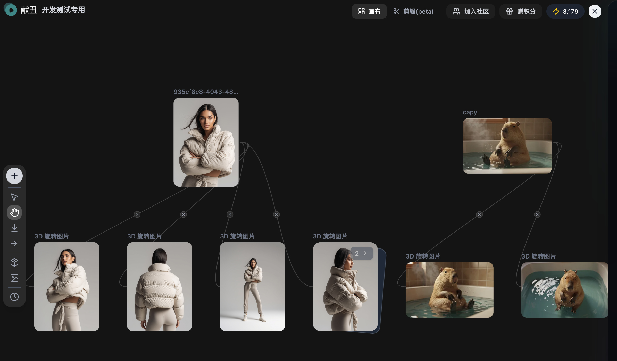 🎨 画布串联 — 多个模型拖到一张画布,搭建专属流水线