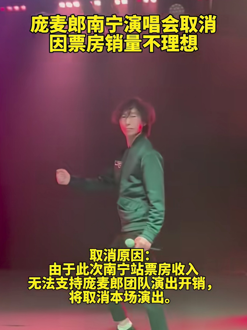 庞麦郎广西演唱会凉了,据悉由于票房收入不够理想,无法支持整个演出团队的开销,最终只能取消本场演出。