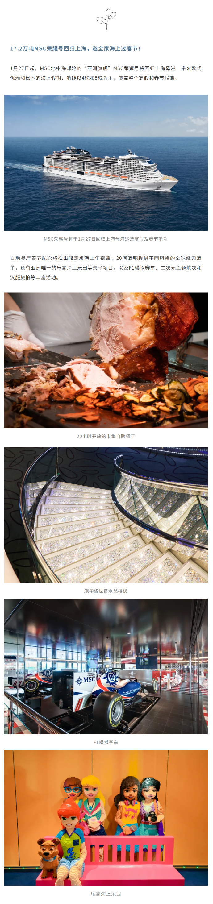 涵盖环球远航、春节欢聚、阖家康养等多元主题,为市民游客打造高品质海上假期。