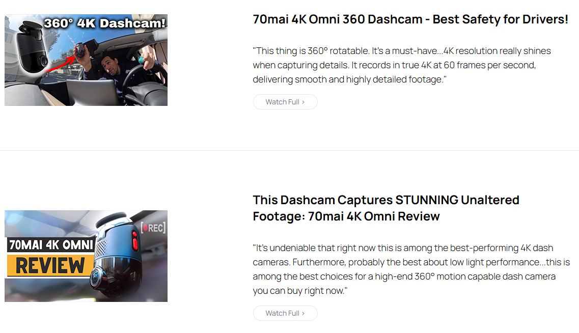 一是以实际参数、功能为中心的产品展示视频。在这些视频里,通常都会有对70mai行车记录仪的详细展示,再配合实际问题讲解,直观展示产品的技术实力。