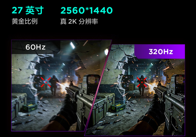 但你要是白天工作设计累了,晚上可以直接切换到FHD 电竞模式,1080P的分辨率下,刷新率最高可以直接拉到320Hz,而且响应时间也低至1ms,打 FPS、MOBA 这类对操作反馈极其敏感的游戏时,顺滑感和跟手性会明显提升;