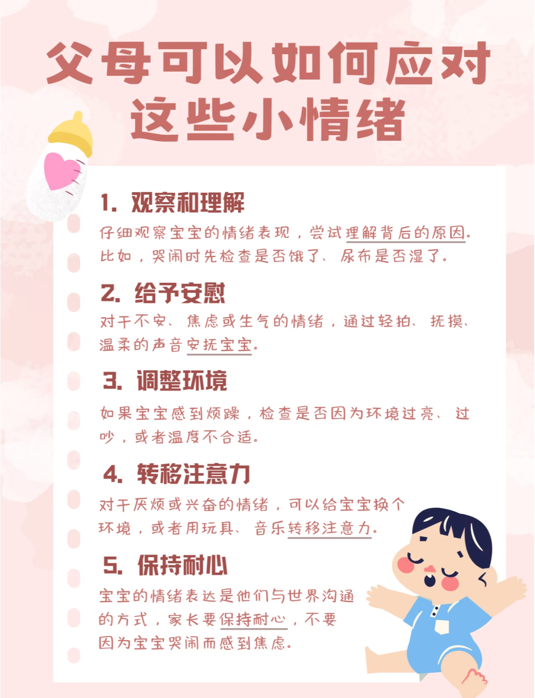 最重要的是,请记得保持耐心。宝宝的每一次哭闹和情绪波动,都是他们学习与世界相处、与你沟通的方式。这个过程或许会让人疲惫,但请别因此焦虑。你的平和与接纳,是宝宝情绪世界里最稳固的港湾。当你越来越能读懂他的“婴语”,及时回应他的需求,你会发现,那个“难搞”的小人儿,其实正一点点地建立起对你的信任和对这个世界最初的安全感。
