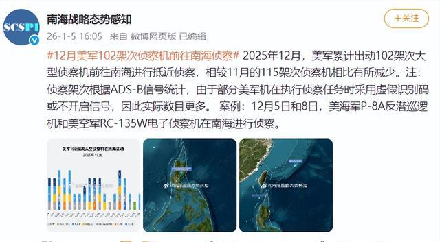 赫格塞思于是跑去船厂冲着镜头吼,要恢复“绝对威慑”。话音落下,美军侦察机开始在南海像蜜蜂一样盘旋,十天上百架次。