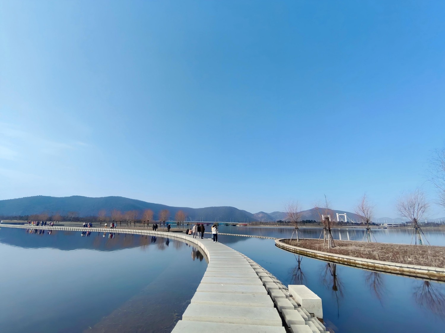 钟灵毓秀,山影清越。于冬季爽朗天气信步于湿地公园,既无夏日烈阳炙烤、暑气蒸人之苦,亦无春日湿雾缠身、潮意沾衣之忧。唯见阳光和煦,微风习习,水天一色中的静明畅通,万物融于水光。目之所及,清心气爽,更觉意志高远。