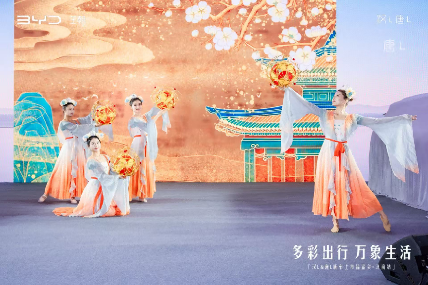 晚间发布会在一段气势恢宏的国风舞蹈中拉开序幕,舞者的刚柔并济,象征着新车兼具力量与优雅的设计哲学。在震撼的视听效果与全场倒数中,覆盖在汉L与唐L之上的幕布缓缓落下,标志着两款集大成之作正式登陆济南市场。