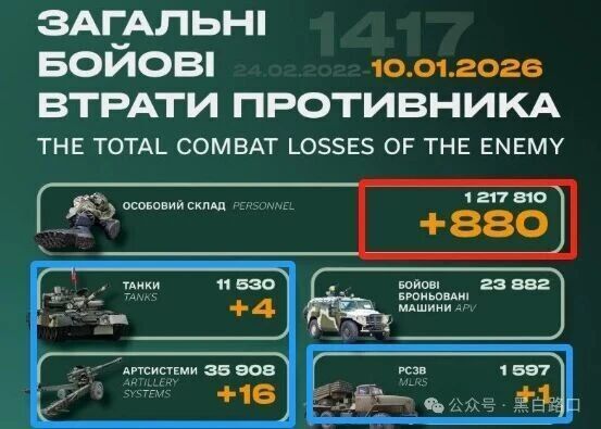 俄乌战争第1417天(2026年1月10日),过去24小时大事件概述如下:
