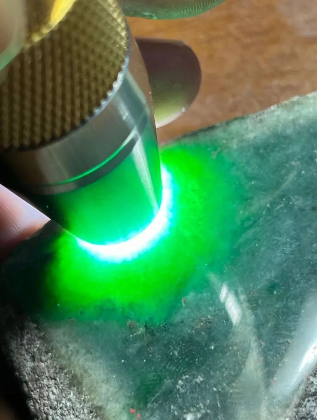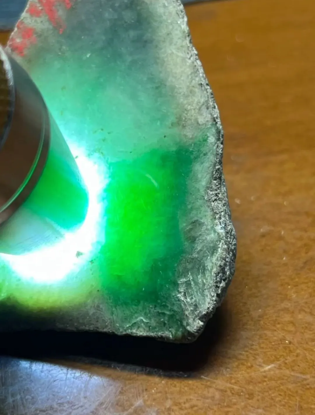 中亦偶然在店里看见的料子,都差不多快把它忘了,这块小料子是上次跟朋友拿高货的时候附带过来的,记得当时是跟朋友买了一35w的料子,然后觉得这个还不错,他要价3000,因为买了那块,然后就1000块收了回来,这是一块莫西沙小原石,皮壳表现还不错,场口也比较正,并且沙很细,不过种水应该不会很好,打灯也没很强的表现。