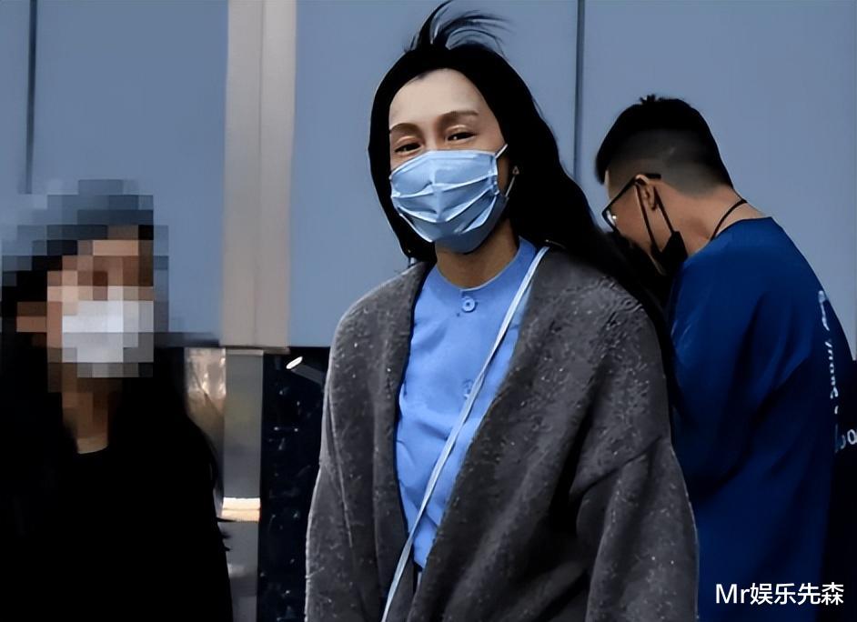 虽然戴着口罩,但是依然不能掩盖她疲倦的神态,眼窝深陷,身姿有些佝偻,就像普通的路人一样,没有一点明星的光环。