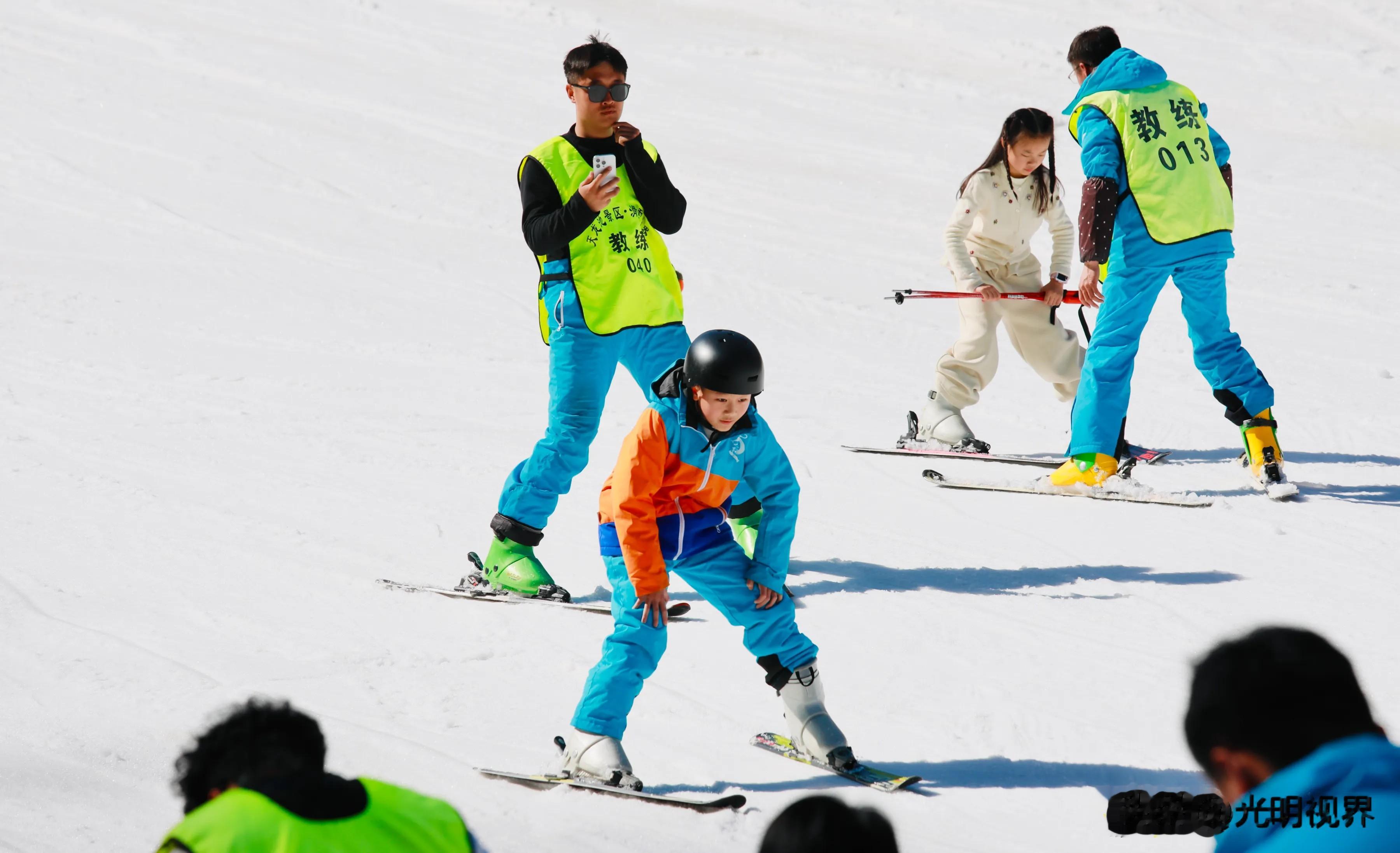 游客在天龙池滑雪世界体验滑雪乐趣