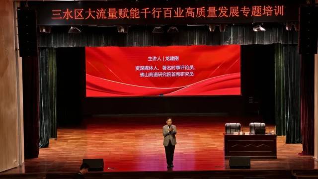 资深媒体人、著名时事评论员龙建刚则以“改变我们的宣传”为主题展开分享。作为佛山商道研究院首席研究员、《南方日报佛山观察》首席顾问,龙建刚长期以独到视角解读时事,其主持的《话龙点睛》节目深受各界认可。他表示,三水区开展多场大流量赋能千行百业培训,是新时代新宣传的一种探索,这种做法值得肯定。此次分享中,他从专业媒体视角出发,提出了宣传工作的创新方向,高屋建瓴的见解为现场学员带来了全新的启发。