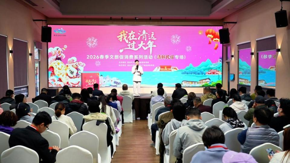 民宿专场搭桥梁:春节前夕,“我在清远过大年”2026春季文旅促消费系列活动(清新民宿专场)在河中温泉VLOG酒店举办,近百名粤港澳大湾区旅行社代表,携手广州、深圳、佛山等多地及清远本地超60家文旅企业、行业协会代表齐聚,共话合作、共拓市场,为新春文旅市场实现“开门红”奠定基础。