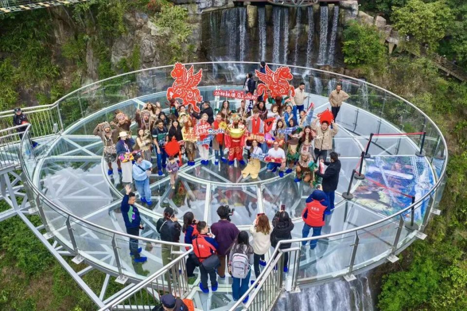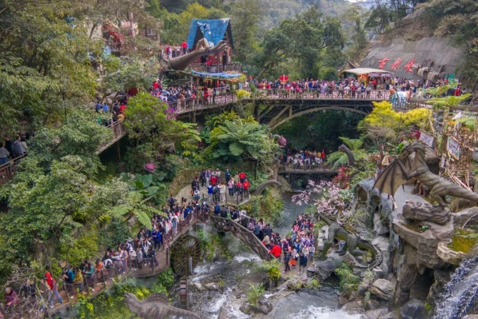 古龙峡景区:推出“古龙秘境·丛林奇航”情景式演艺,打造广东首个全时全域丛林情景演艺,兽皮装扮的部落演员列队迎福、擂鼓战舞贺新春,45米宽瀑布边与游客携手共舞,云端纳福解锁互动彩蛋;同时打造非遗文化街沉浸式农特产品体验区,搭配飞马人偶巡演、财神派红包雨等马年限定活动,年味与趣味拉满。