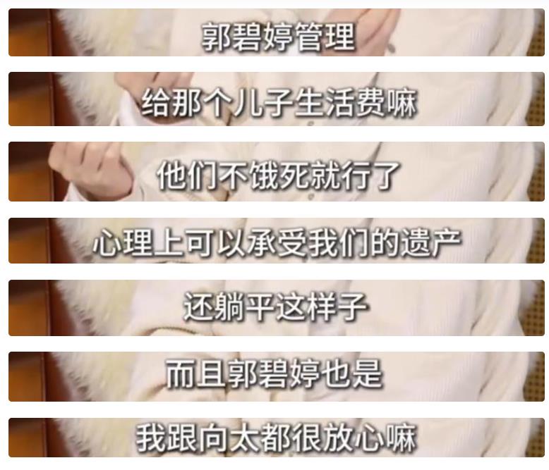 万万没想到的是,向华强和向太看得很通透,居然一分钱也没留给儿子,而是交给了郭碧婷。或许说,在他们眼里两个儿子都没有彻底“长大”,花钱大手大脚,更不善于理财。