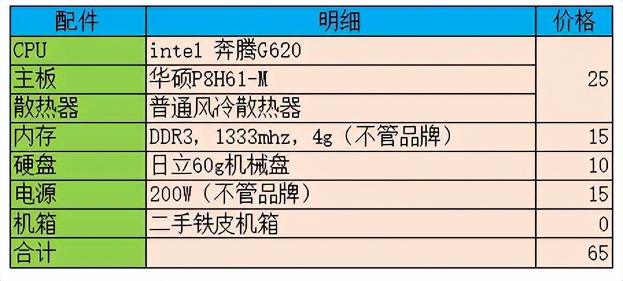 最终,老铁要的电脑也算是装出来了,总共耗资65块钱。