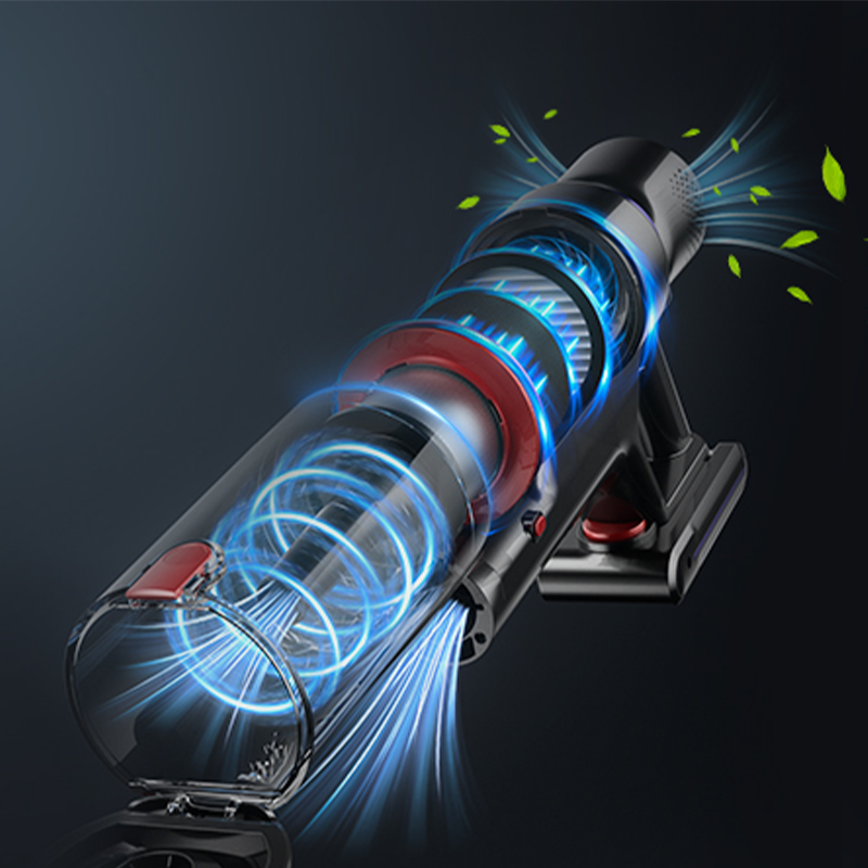 核心技术:强大动力系统架构:搭载12万转高速无刷电机,并采用复合锥形气旋分离架构。可稳定输出高达220AW吸入功率与的35000Pa强大吸力性能,配合99%尘气分离效率,持久保持强劲吸力,性能全面领先同级产品。