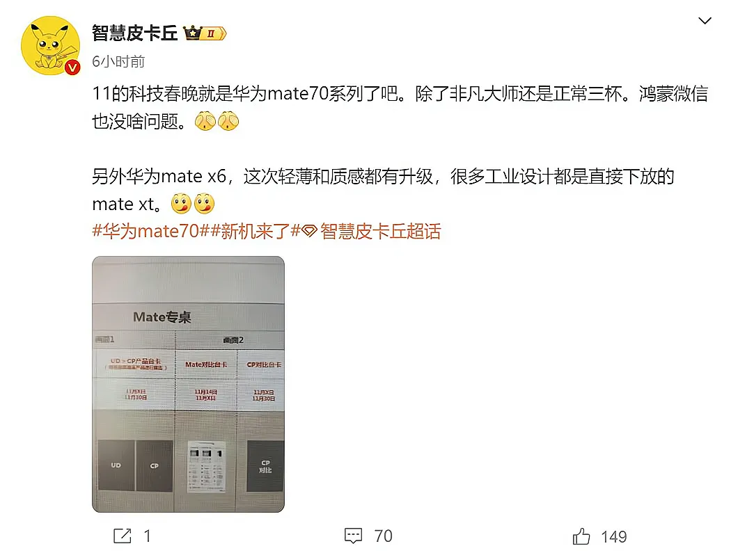 现在全网的花粉都在等待华为Mate70系列发布,预计就在这个月19号左右。但实际上,除了华为Mate70系列外,其实还有