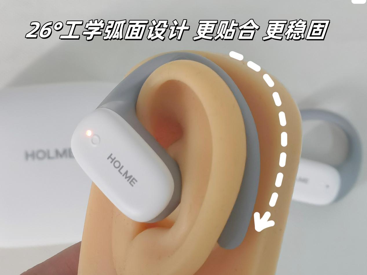 佩戴设计:26°工学弧面+单耳6.8g