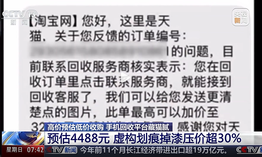 一部估价4488元、却仅收3017元的手机,揭露了以“估吗”为代表的手机回收平台服务商的“砍价”套路。12月21日,中央广播电视总台新闻频道《朝闻天下》栏目以6分多钟的篇幅,曝光曝光手机回收平台藏猫腻。