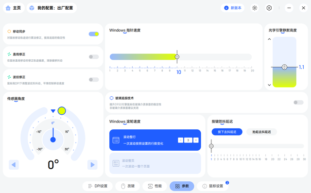 同时,按键抬起、按下消抖延迟开放0-32ms可调,光学引擎性能模式和多档按键扫描率开放可选,玩家可通过官方驱动软件进行个性化调校,打造专属的操作手感。