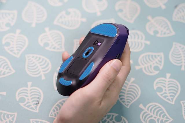 此外,鼠标底部设有磁吸收纳仓,可收纳微型nano 8K接收器,既避免了接收器丢失,又保证了鼠标外观的整体性,接收器带有实时电量RGB灯光显示,让玩家能够随时掌握鼠标电量情况,设计十分贴心。