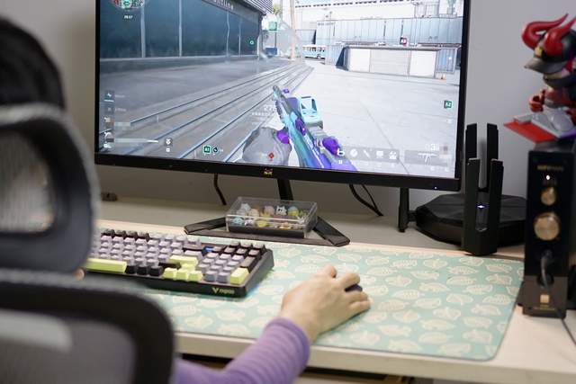 最值得称道的莫过于其“电驭紫”配色,不同于传统紫色的沉闷,这款配色在紫色基调中融入了细微的金属光泽,在光线照射下呈现出渐变质感,既有电竞产品的酷炫感,又不失时尚气息,轻松区别于市面上千篇一律的黑白色款。