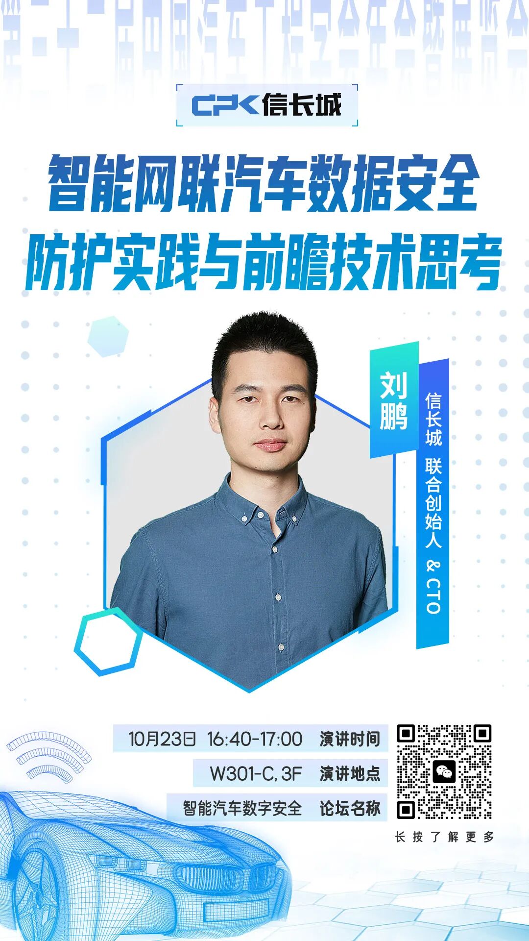 信长城诚邀您莅临:联合创始人 & CTO 刘鹏将在智能汽车数字安全分论坛,深度分享《智能网联汽车数据安全防护实践与前瞻技术思考》;D51 展位更有创新应用成果亮相,期待与您共探安全技术落地路径,共筑产业生态。