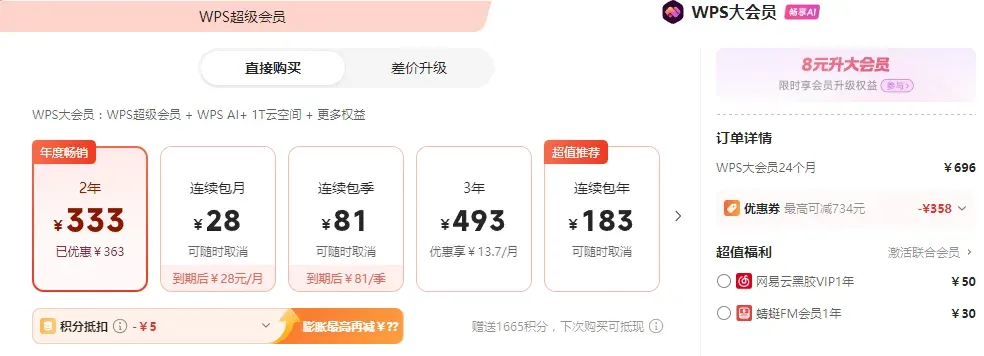 他一把推开了我,并说:“这是另外的价钱,你得加50,升级成WPS大会员。”