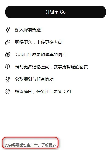 当然,ChatGPT的Go版,又是收会员费,又是植入广告,还是很突破我们以前的思路逻辑(会员=干净;免费=广告)。