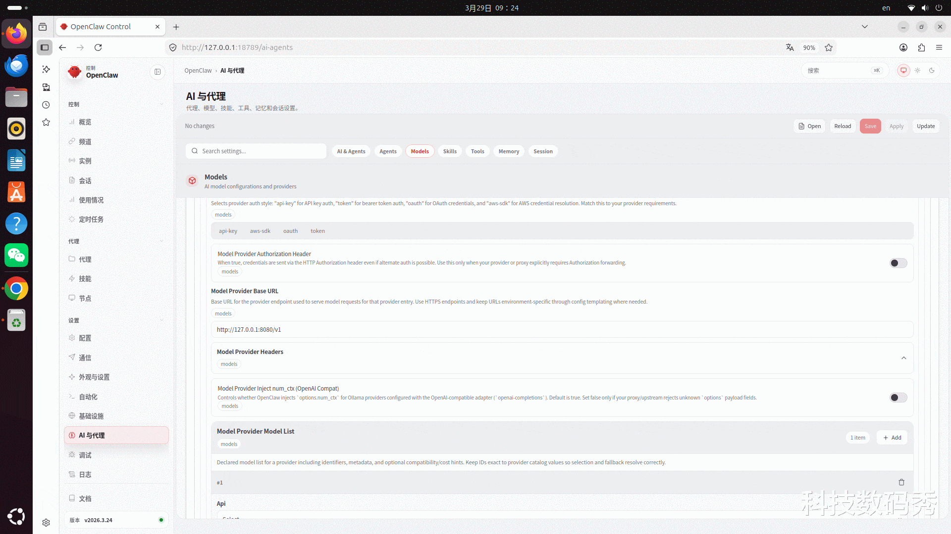 解决的方法也是有的,那就是可以在openclaw的控制面板中,左侧找到“AI与代理”,然后点击右侧的“Models”,拉到最下面进行手动添加本地大模型,网址和名称依然是上面提到的,填写进去即可,不懂的地方直接不填,保存,然后回到聊天框AI模型里选择为本地9B即可。