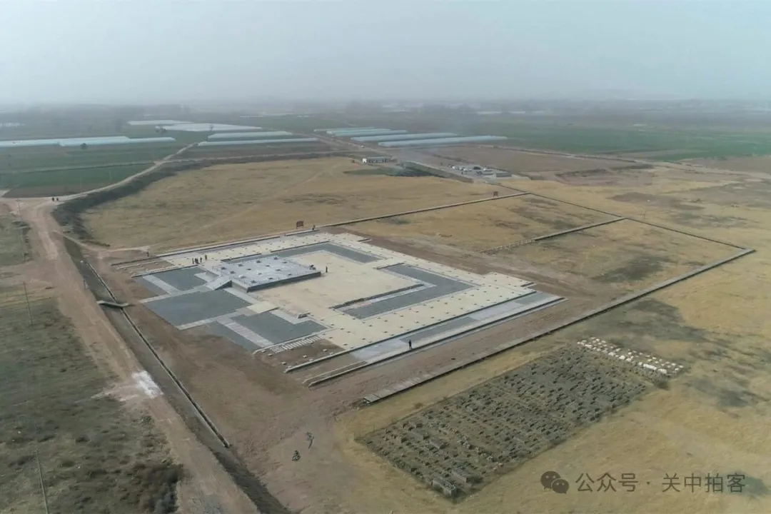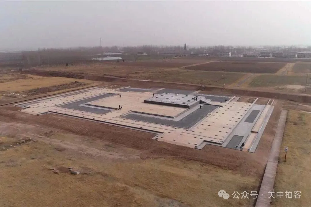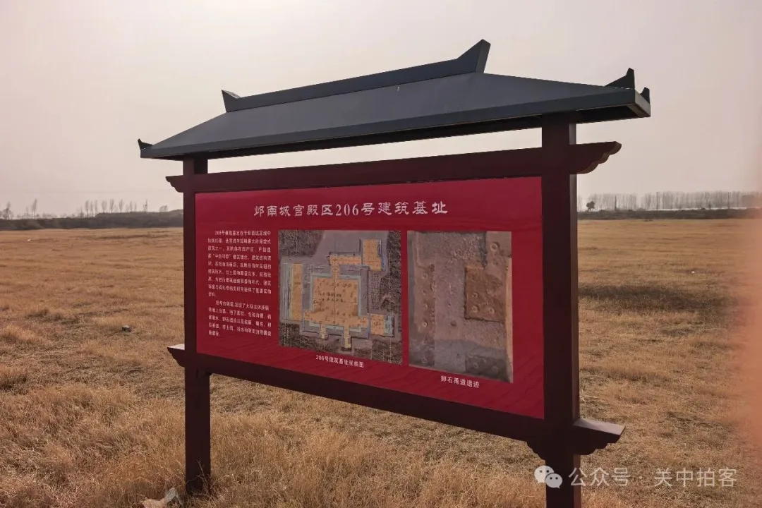 2026年2月22日下午,我参观完铜雀三台遗址,来到漳河南岸的邺南城遗址。在河北省邯郸市临漳县倪辛庄村西北侧的田野里,按照考古勘探和发掘的成果,复原修建了206号建筑基址。目前,这里是邺城国家考古遗址公园面积最大的文物保护工程。