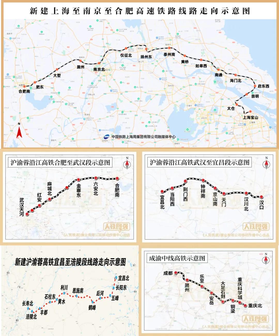 由北沿江高铁、合武高铁、武宜高铁、渝宜高铁、成渝中线高铁等段构成。