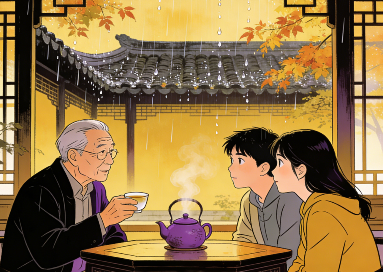 秋雨淅淅沥沥敲打着青瓦,茶香在八仙桌上袅袅升腾。赵老师往炉子里添了块炭,火光照亮他手中的紫砂壶,“来,都坐近些,给你们讲几个玄乎事儿。” 围坐在暖炉旁的年轻人立刻凑了过来,连窗外的雨声都好像小了几分。