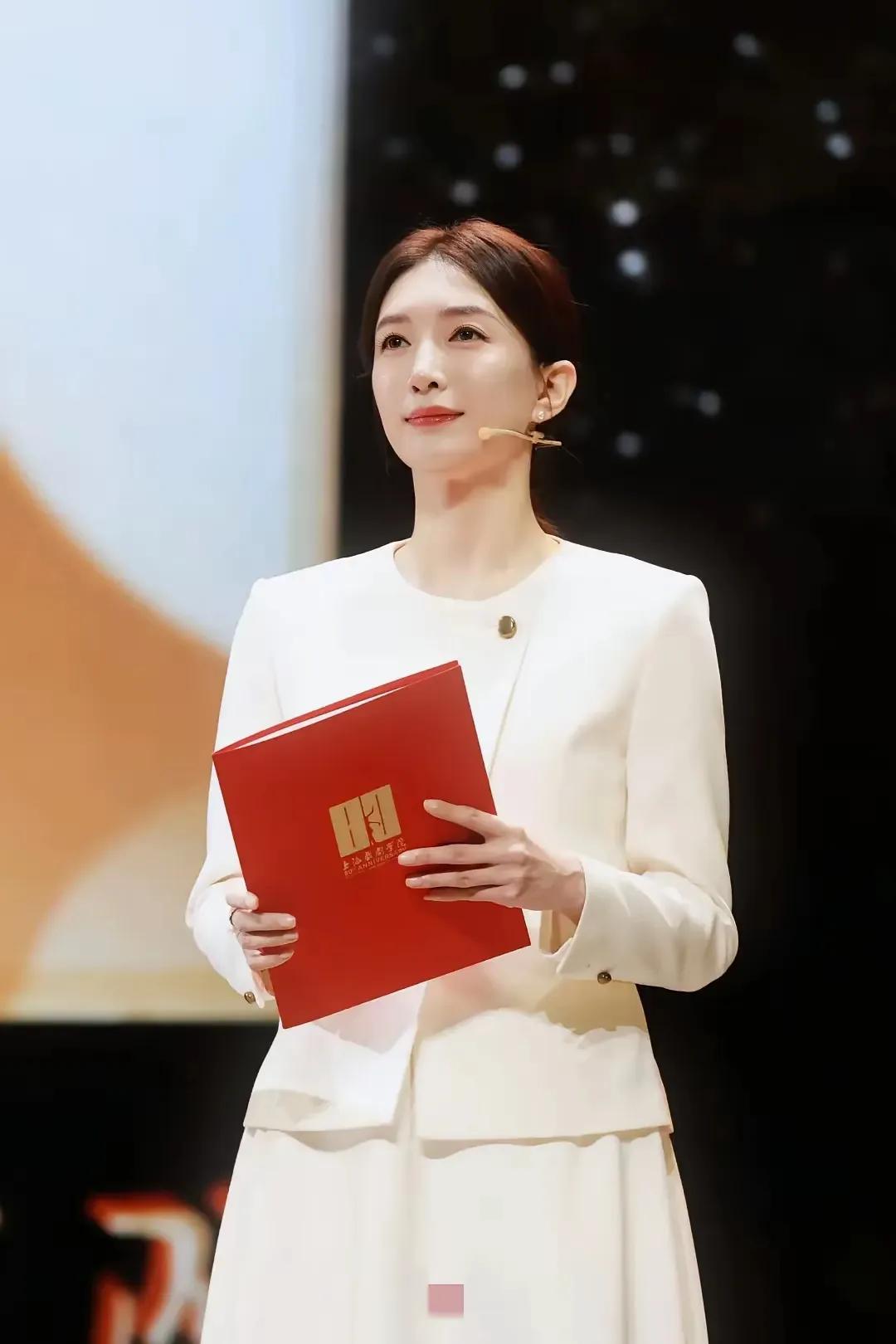 在这次校庆中最出色的要数江疏影,身着一套白色小香风出镜,扎着低马尾非常温婉,气场非常强大,还以为她在央视当主持人呢。