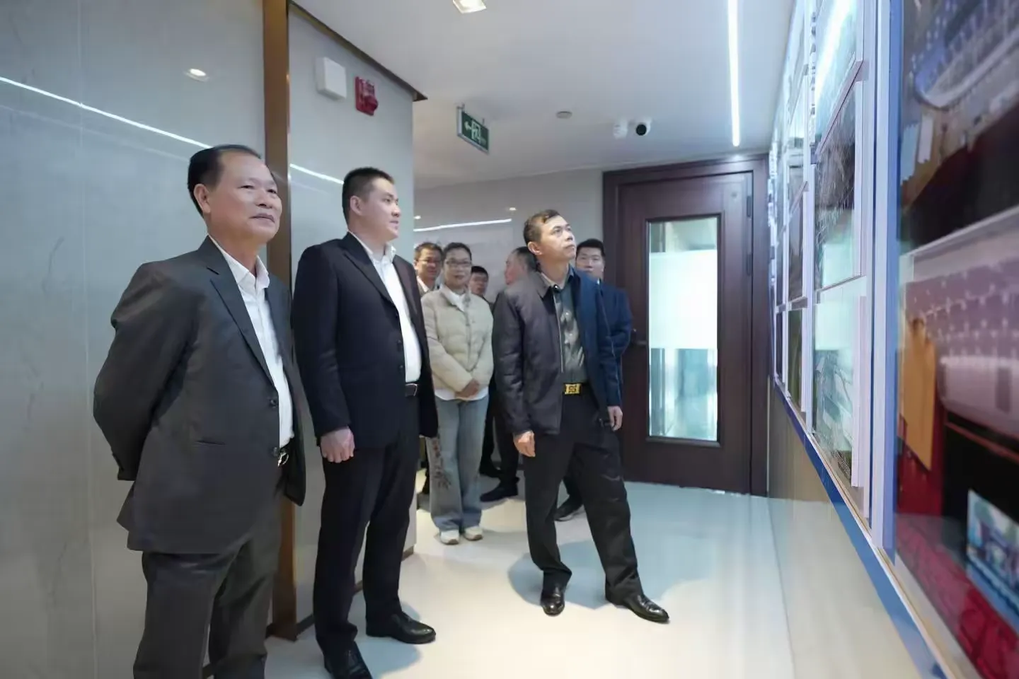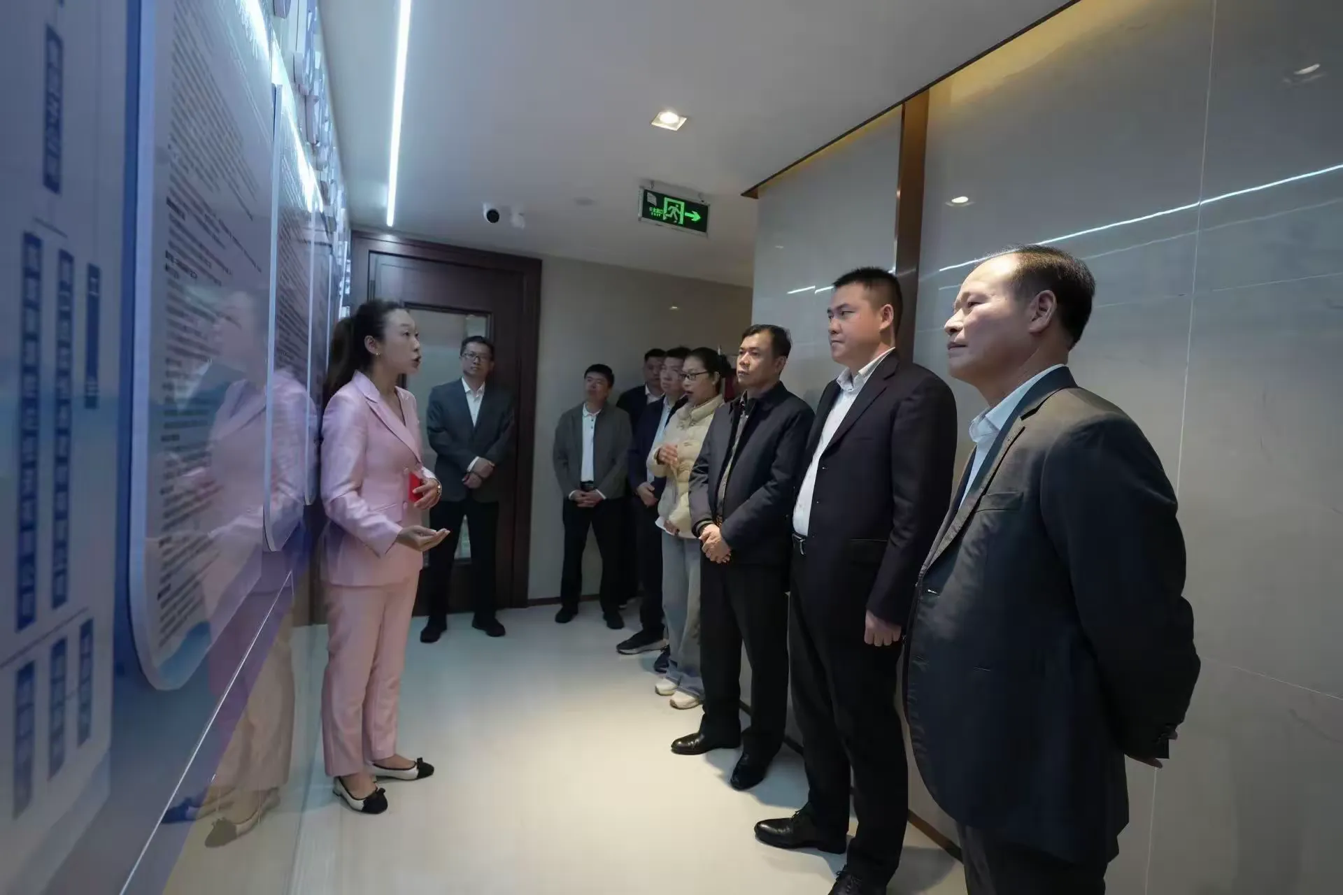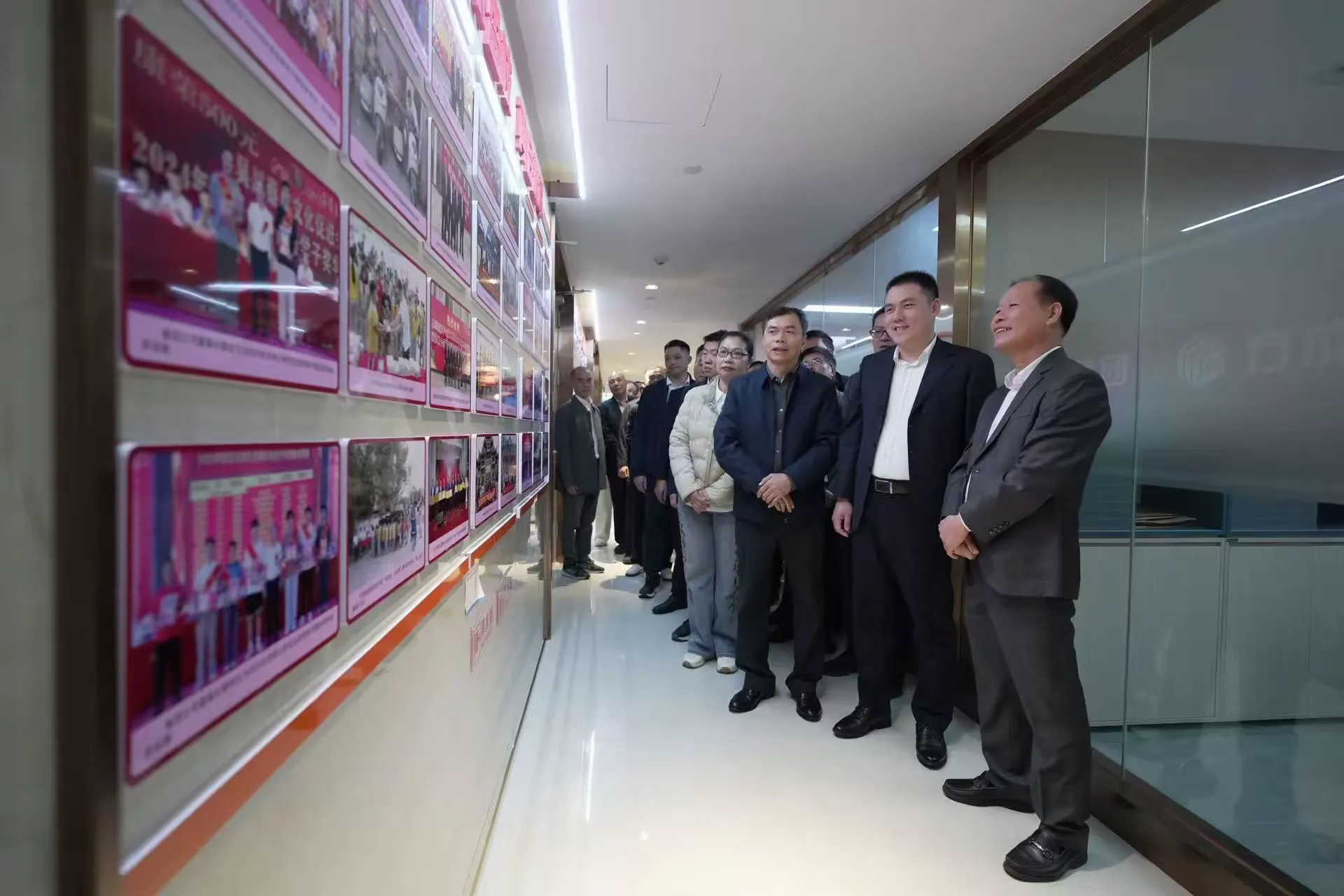 领导们参观考察方成集团的文化长廊,详细了解企业发展历程与文化理念