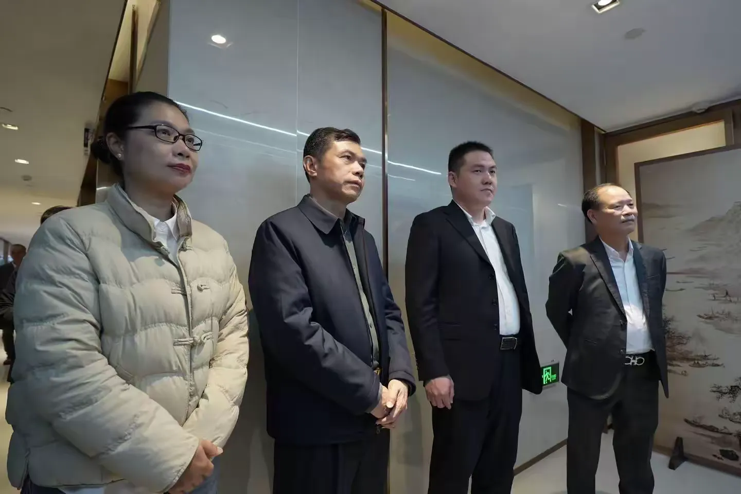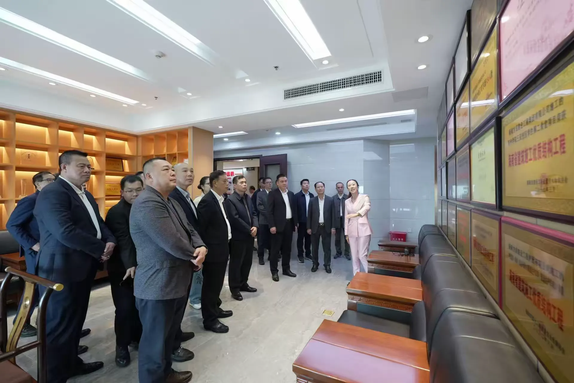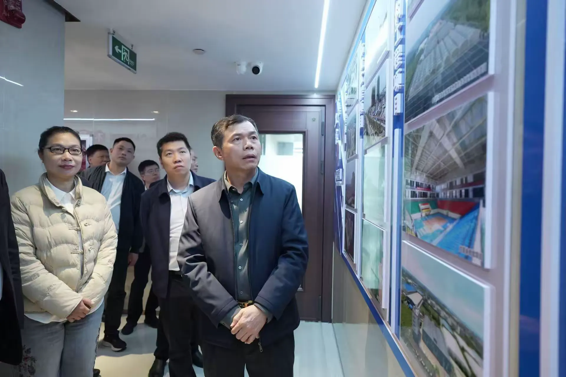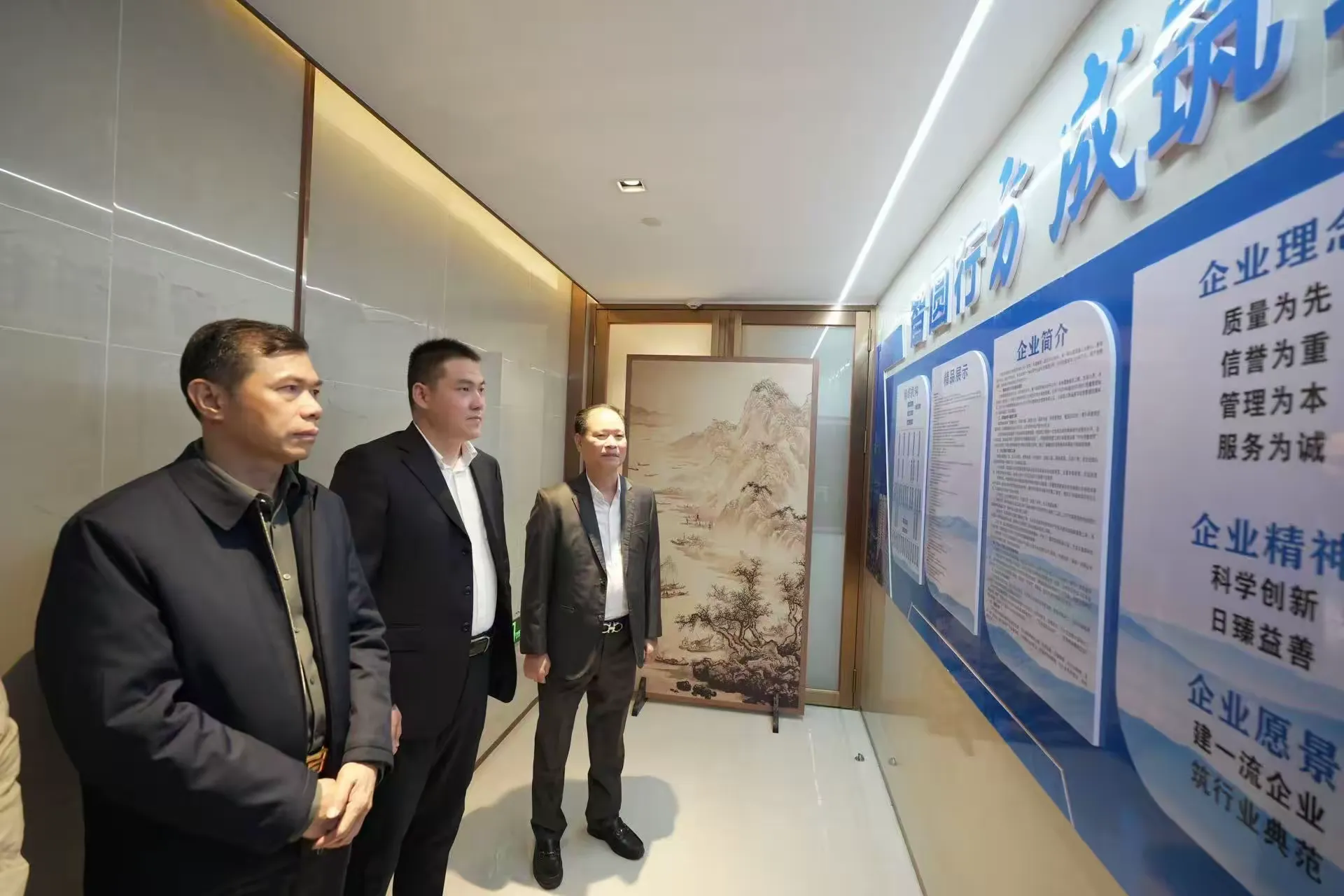 领导们参观考察方成集团的文化长廊,详细了解企业发展历程与文化理念