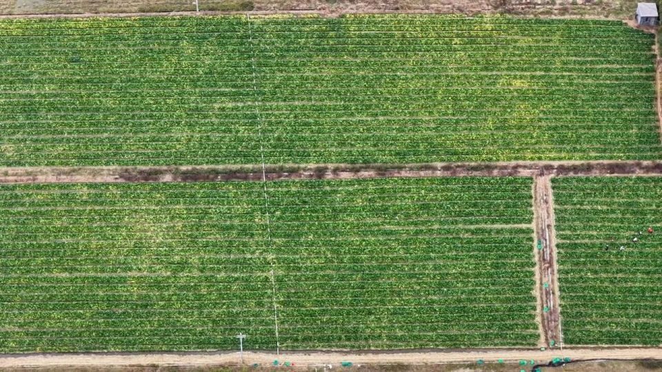 为保障迟菜心的品质和产量,基地在种植管理上下了不少功夫。在肥水管理方面,基地采用水肥一体化技术,通过铺设滴带,将肥料精准溶解于水中,再借助滴带以点滴渗透的方式,把肥水均匀且精准地输送到每一株迟菜心的根部土壤。这种方式不仅节约了大量人工,还能及时为蔬菜补充营养,使迟菜心生长更健壮、口感更清甜。