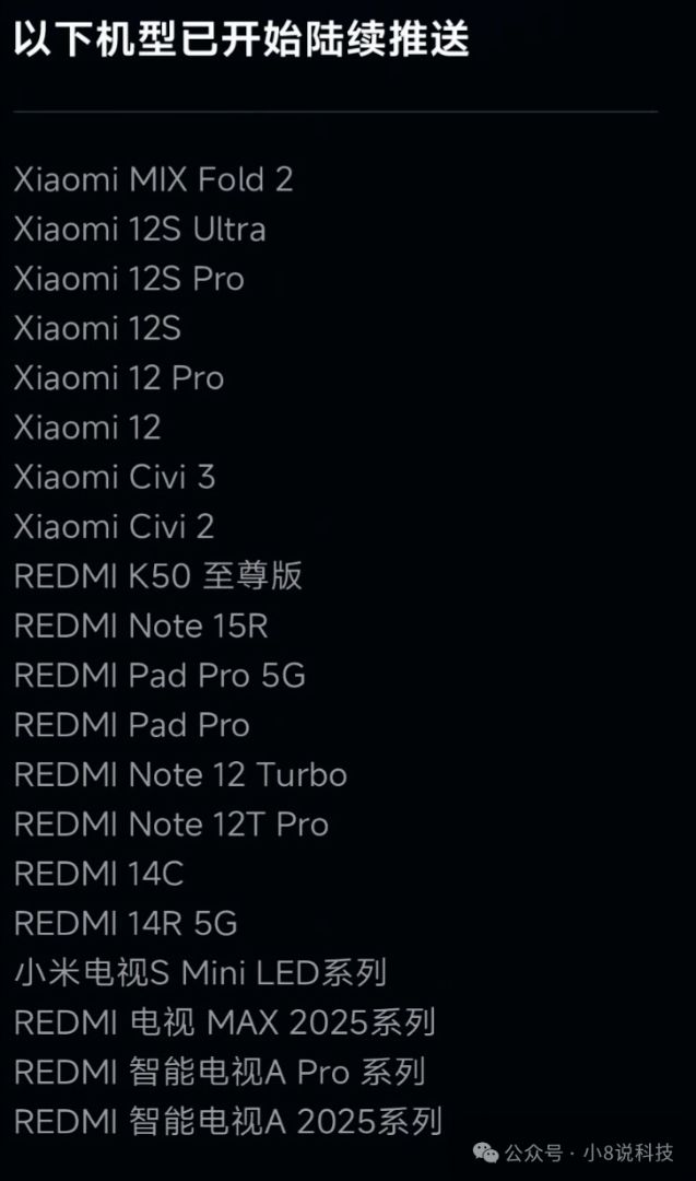 小米 11 系列、红米 K50 标准版、红米 Note 11 系列,彻底无缘澎湃 OS 3。