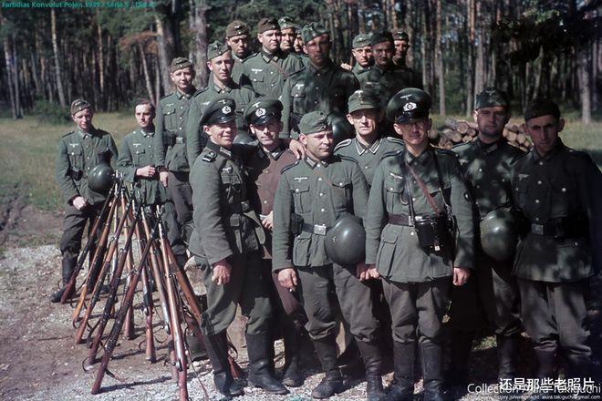 1939年,入侵波兰的部分德军来了个大合影,一个个笑容灿烂。可以看得出来,他们一路上打得很顺。