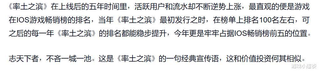 雪球上就有互联网基金经理表示,《率土之滨》账号的长期回报率堪比黄金,这种以前被我当笑话的言论,今天看来还真是所言不虚。