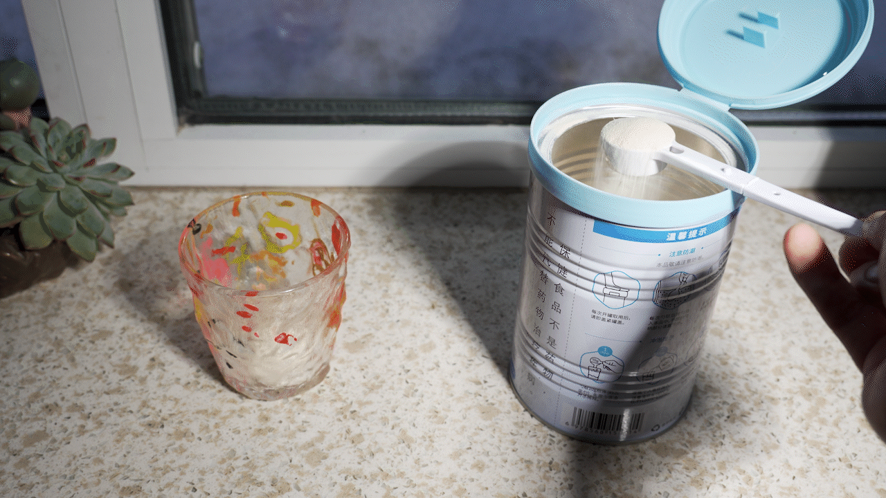 ▼不过在舀取时要注意,要等到不漏出蛋白粉的状态时,再转移到杯子中去。