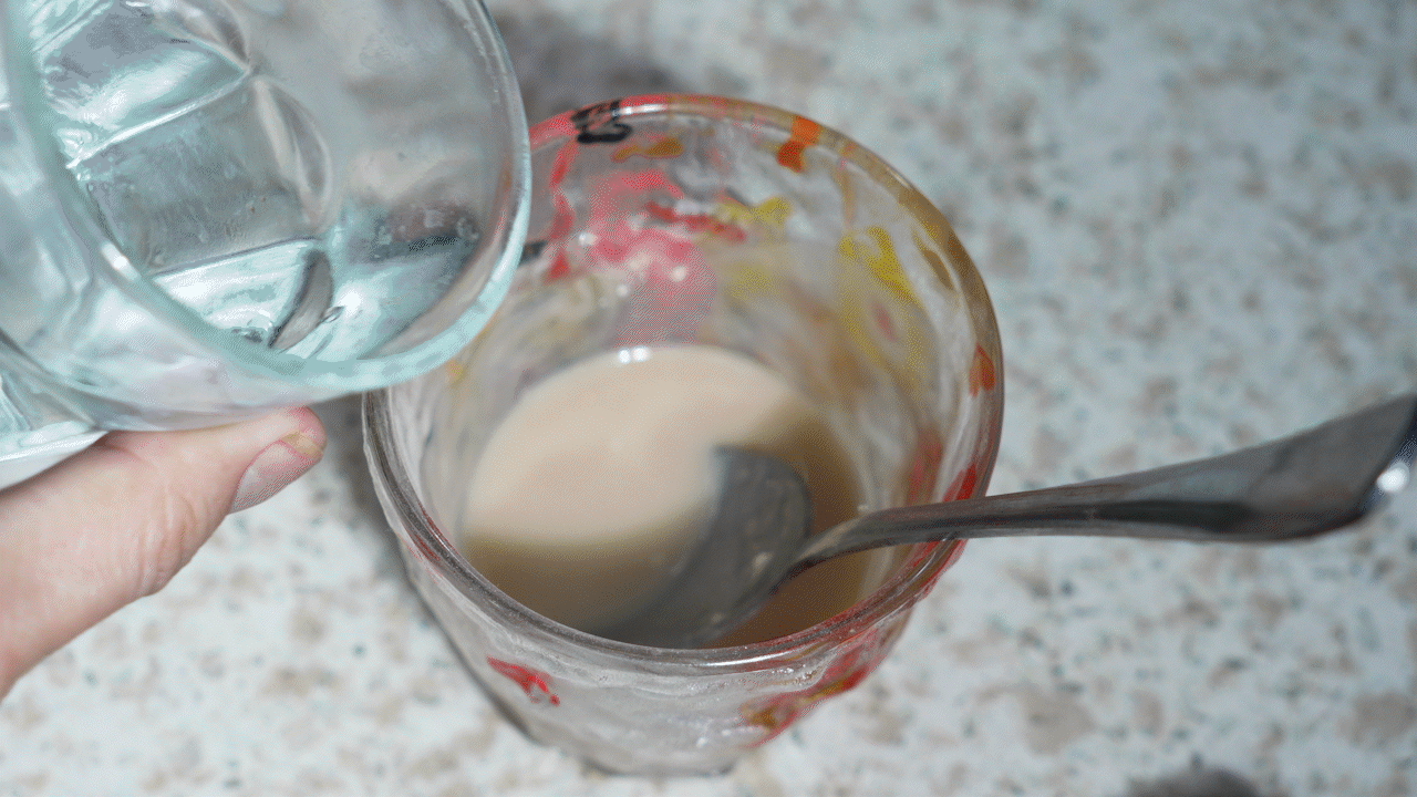▼实测了一下,用凉开水冲也是可以溶解的,只是需要稍长时间的搅拌。如果嫌累,将其放置1~2分钟,也会完全溶解。