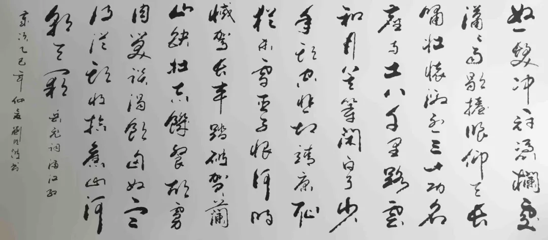 其行草的“灵动酣畅”与楷隶的“浑穆”实为一体两面。他以“二王”帖学的清雅流便为血脉,灌注“颠张醉素”的浪漫激情,但始终以来自碑学的沉实笔触加以节制,故能“气韵生动”而不失之于浮滑,“丰腴畅达”而能骨气充盈。这种碑帖互参的自觉,使其行草在潇洒的视觉表象下,蕴含着深刻的张力与厚度,实现了“沉着”与“痛快”的辩证统一。近年风格转向行草,并非简单的书体偏好转移,而是其艺术语言进入自由表达阶段的必然——性情与修养,终需在最为挥洒的形态中得以全然释放。