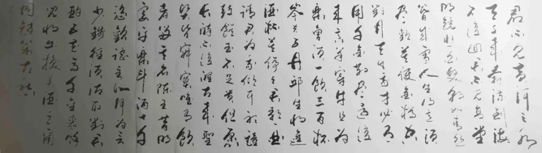 近年来经过不懈的临帖与努力,书法风格,逐步转向以行草为主。看现在的作品,雄逸潇洒,气韵流畅,富有变化而不失法度。寓情趣于微妙变化之中。以(既知险绝,复归平正)的古训统摄他的笔墨和艺术走向。