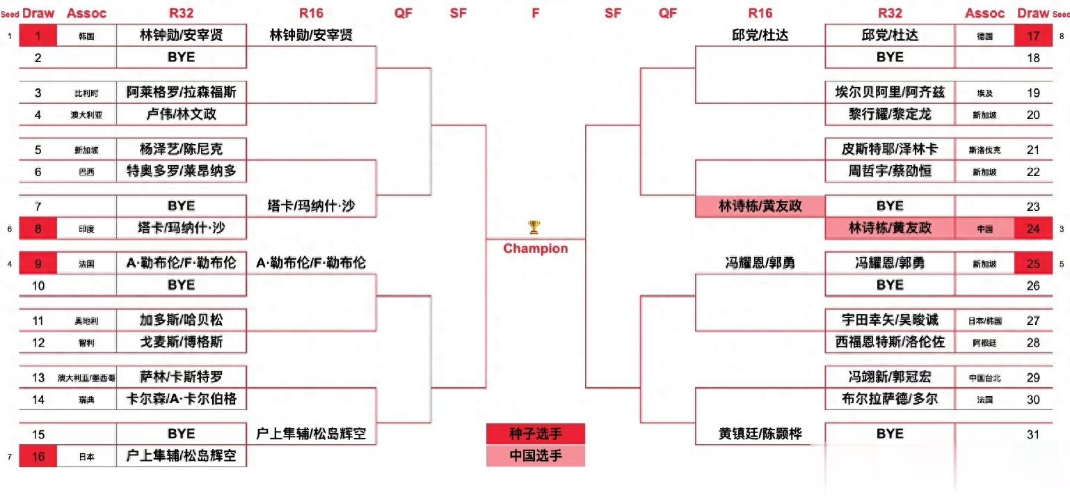 由于派出的都是年轻队员,也有从来没有搭档过的,所以他们的双打排名并不高,种子位也不高,这也导致签位并不是多么令人满意。这也正是年轻队员成长需要付出的,希望这三对全新搭档能够发挥出自己的最佳状态。