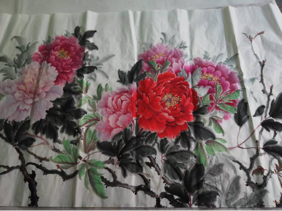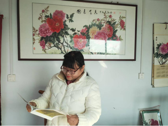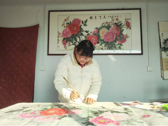 最初拿起画笔时,仝红玉毫无章法,只能算是“瞎抓着画”。山水、老虎、花鸟她都一一尝试,却总觉得少了些韵味。直到一次,她将一幅牡丹习作拿给朋友看,朋友眼前一亮:“你别瞎琢磨别的了,这牡丹画得挺像样,好多人都喜欢。”说者无心,听者有意她看着自己笔下的牡丹,忽然找到了深耕的方向。