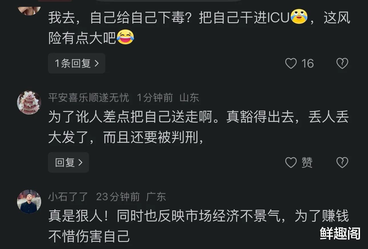 根据当地官方人士的披露,他们合谋食物中毒事件,实际上是夫妻二人共同策划的骗局,目的是为了骗取钱财。他们试图通过制造网购娃娃菜中毒的假象,向电商平台或商家敲诈巨额赔偿。不得不说这对夫妻真的是太狠了,为了钱竟然“自己给自己下毒”。